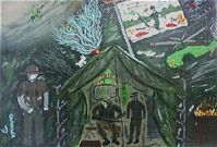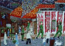 | Aurence's wife, Biegun, wrote "My husband paints as an Outsider artist and does a few different subject matters but mostly Vietnam paintings. The response to his works has been enormous and he can't paint enough Vietnam paintings to keep up with the demand. They are powerful and moving pieces that have captured outsider collectors. You can view his site at: Just click on Aurence' s url http://www.aurence.net to go to his main page. You will see other links to 'sold' works and his bio." | |||||||||||