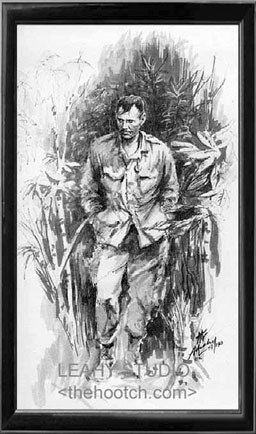 | The Cost Was High. "October 1967, in the Hai Lang Forest, south of Quang Tri, during Operation Medina. Delta Co. 1/1 skipper reflects on his unit's coming to the aid of an ambushed brother company, in the dense piedmont. Edition of 190 prints with 10 artist's proofs."