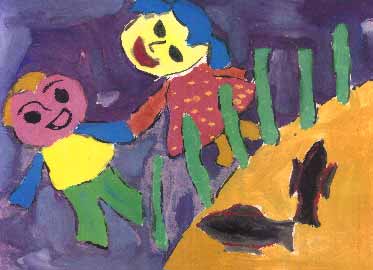 | Lee Lee leepainter@hotmail.com is setting up a collaboration of American and Vietnamese artists to create a set of murals for a new landmine education center built by PeaceTrees Vietnam in Dong Ha town (Quang Tri Province). The above art work was created by a group of Vietnamese children who live in the city of Dong Ha. |