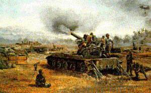Typical firing patterns might be "One Round", followed by "Battery One" if the initial impact was on target. In contact situations the pattern was often"Battery One, Fire For Effect" at the outset to bring large amounts of ordinance onto the enemy quickly. "Battery One" means that the 6 cannon fire one round in unison, while "Fire For Effect" means that the battery will fire continuously at it's maximun sustained rate, adjusting on the fly, until the FO calls "Cease Fire".
