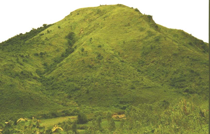 This is a photo of a hill was taken in the summer of 2000 off the southern side of Route 9 between Dong Ha and Laos. From the road, there were some visible signs that there had once been something there in the flat, open ground at the hill's base.