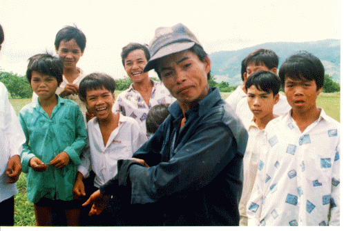 "This was jungle way back in '71. There was a rubber plantation maybe five hundred meters from here. We had crossed the plantation and were headed back into the jungle, and ran right into the middle of their bunker complex. It was not a good day. This was between Ap Ba Chang and Gia Ray. I have not idea what the farmer said, but from his expression and that of the kids.....it must have been interesting !"