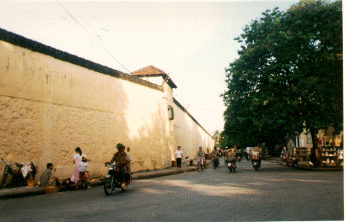 "The Hanoi Hilton had glass embedded in the mortar on top of the wall. This made a very forboding appearance."