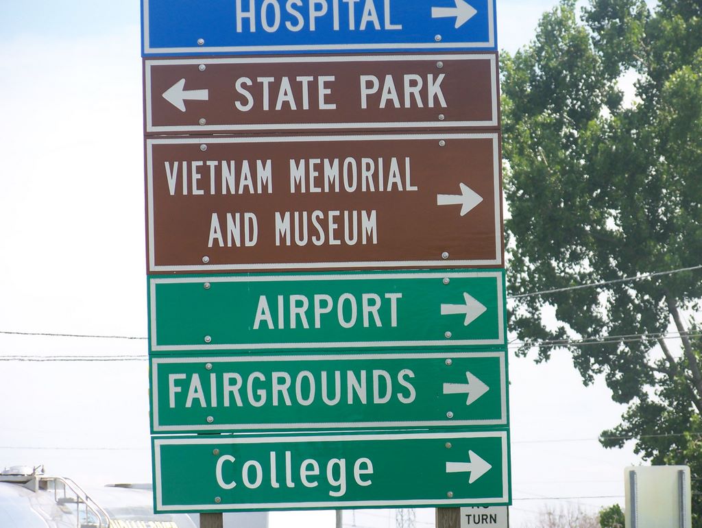 These signs along both Northbound and Southbound I-75 in Monroe, Michigan give direction to all those who wish to visit the park located on South Dixie Highway, just 2 blocks from the I-75 exits. Heck Park has a paved and well lit parking lot and is open to the public 24/7. The entire memorial site, including both helicopters, is also lit up at night.