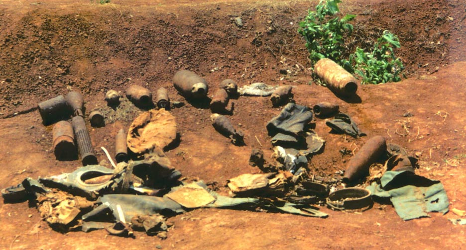 A lot of unexploded munitions can be seen around the area.