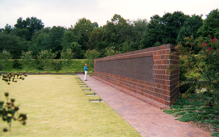These pictures were taken in January of 1995. They show the memorial during the winter months of the year. Although the grass is in it's winter colors, the contrast of the red brick of the memorial and the "sleeping" lawn compliment each other very well.