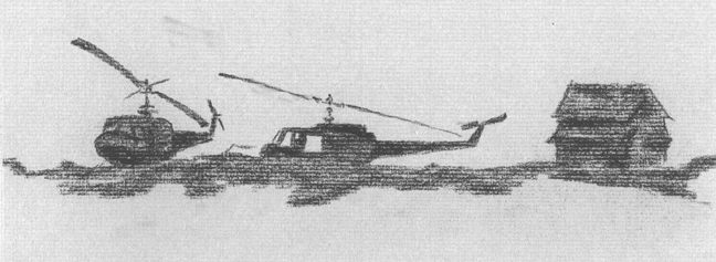 "I made this sketch near Chu Lai at our base camp (101st Abn Div). Shortly thereafter, we were overrun during the 1968 Tet offensive. The Vietnamese had rocket launchers set up on our chopper pads."
