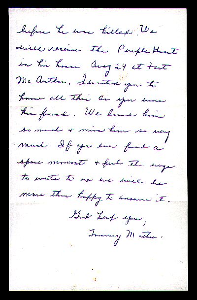 "When we were in one place long enough, we often took the opportunity to write home. I remember reaching over my "slack man's" shoulder to take this picture. It wasn't until many years later, when I made a mural size print from the negative, that I was first able to read what he wrote to his girlfriend."