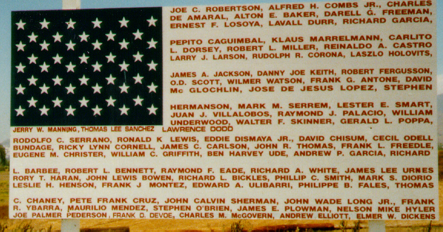 An American Flag Monument with the names of those from the local area who were killed in action in Vietnam