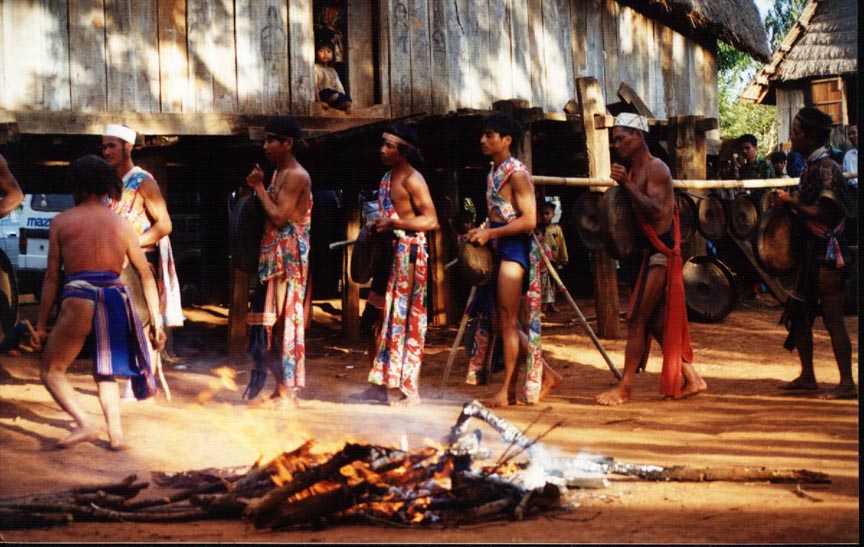 This group of Bana people, from a hill region between Saigon and Boun Me Thuat. Thang describes this scene as follows: "They look like original American [Indians.] They dance around the fire and scream like animals."