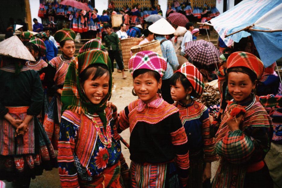The Flower H'Mong can be found in the area of Bac Ha. This photo shows the Flower H'Mong at the Bac Ha Sunday market.