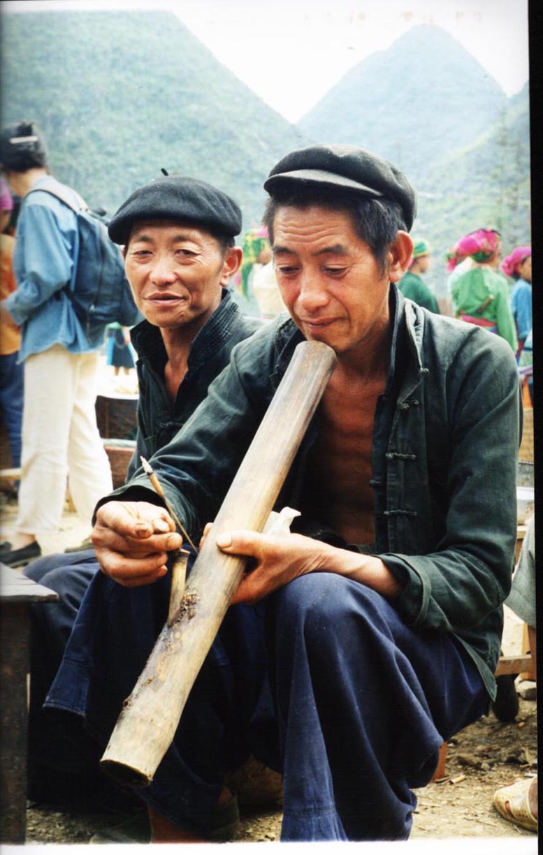 These men are of the Black H'Mong This is the market on the way from Dong Van to Quan Ba. This region was the last residence of the H'Mong King, who died in 1946.