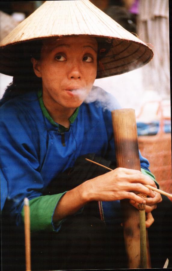 This Nung lady sells tobacco at the market.